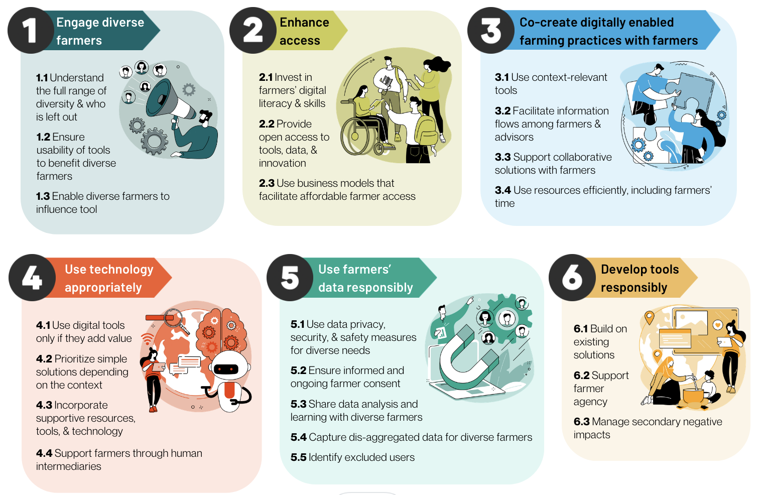 Principles for inclusion: Engage diverse farmers, enhance access, co-create farming practices, use technology appropriately, use farmer’s data and develop tools responsibly.