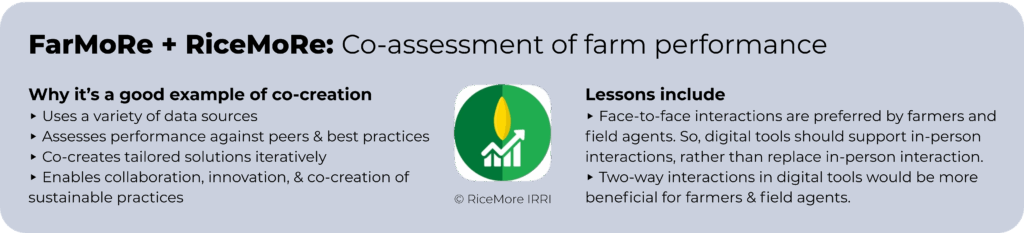 Resources: Digital agency framework to co-creation of agroecology practices | Co-creation applied to digital innovations for smallholder farmers: An example from Brazil | FarMoRe provides an inclusive digital solution to co-create agroecology at scale for rice production in Vietnam